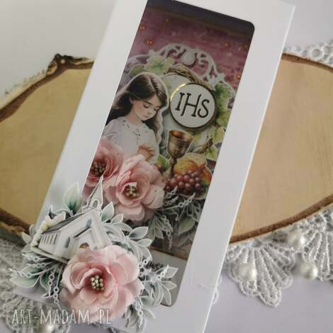 Kartka na komunię dla dziewczynko biało różowa. To nie jest zwykła kartka - to pamiątka, która zostanie z dzieckiem na długie lata, data135,00 zł