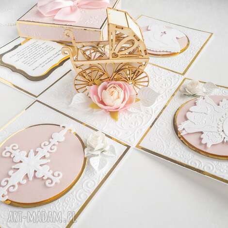 Exploding box - komunia św - handmade scrapbooking kartka. Które stanowi świetną pamiątkę z okazji komunii świętej, ozdobnych tekturek85,00 zł