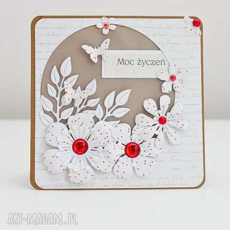 szybka wysyłkaKartka gratulacyjna. Kolorowa, Kartka craft z napisem gratulacje, Ozdobiona papierowymi, białymi kwiatkami30,00 zł