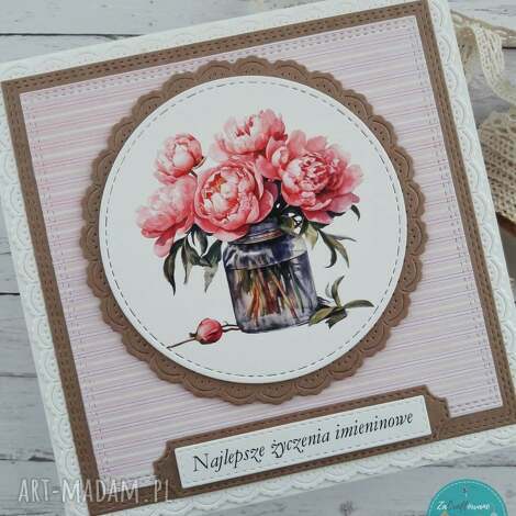 szybka wysyłkaKartka imieninowa z piwoniami w koszu. Ich znakiem szczególnym jest duża grafika umieszczona na ozdobnej serwetce w centralnym miejscu kartki45,00 zł