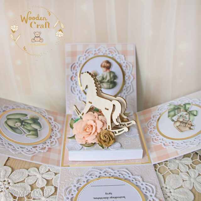 szybka wysyłkaKartka z okazji narodzin maluszka, gratulacje. Scrapbooking kartki handmade Przepiękna kartka na chrzest lub narodziny dziecka, z miksu kolekcji papierów, daty chrztu42,00 zł