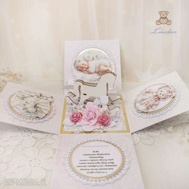 szybka wysyłkaKomunijny exploding box dla dziewczynki. Ślicznymi grafikami, z dodatkiem ręcznie robionych delikatnych kwiatów, Jedyna230,00 zł
