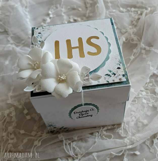 Exploding box - komunia św. Scrapbooking kartki handmade Pudełeczko "explodujące", a każda ścianka ma inne zdobienie, bezdrzewne85,00 zł