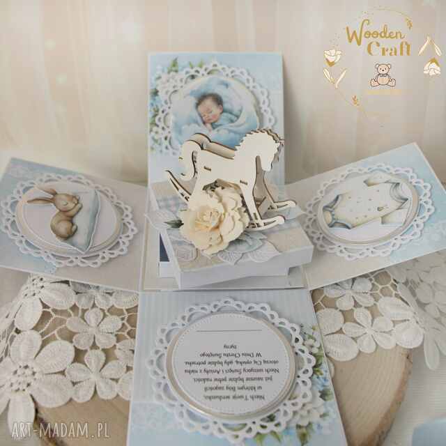 szybka wysyłkaKartka z okazji narodzin maluszka, gratulacje. Scrapbooking kartki handmade Przepiękna kartka na chrzest lub narodziny dziecka, z miksu kolekcji papierów, narodzin42,00 zł