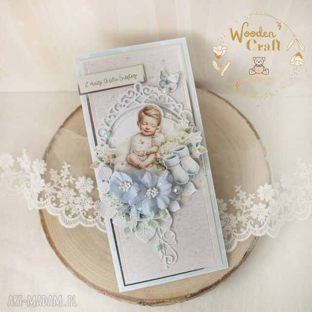 szybka wysyłkaKartka z okazji narodzin maluszka, gratulacje. Scrapbooking kartki handmade Przepiękna kartka na chrzest lub narodziny dziecka, z miksu kolekcji papierów, narodzin42,00 zł