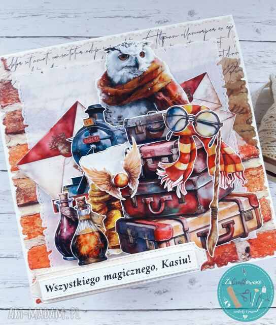 Ręcznie robiona kartka urodzinowa inspirowana magicznym światem Harry'ego Pottera, która sprawi, że w tym wyjątkowym dniu dla miłośniczki bądź miłośnika tego najsłynniejszego czarodzieja zadzieją się czary.