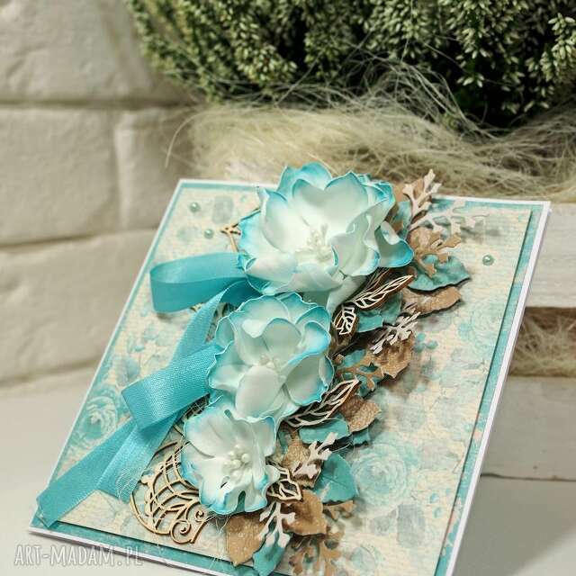 Świąteczna 9. Scrapbooking kartki handmade Główny element dekoracyjnym kartki to kwiat z foamiranu wzbogacony elementami 3d37,00 zł