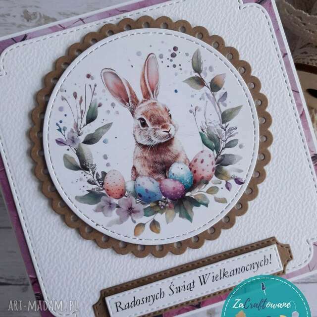 Ręcznie robiona kartka wielkanocna z lekkim efektem 3D wykonana metodą scrapbookingu i z dbałością o każdy szczegół.