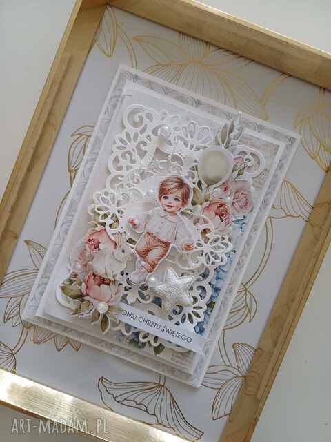Personalizowana pamiątka chrztu, kartka z pudełkiem i kopertą. Elegancka, ręcznie wykonana pamiątka chrztu, perłowego złota130,00 zł