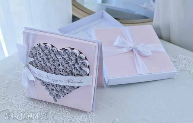 handmade kartka ślubna w pudełku - personalizowana w delikatnym różu scrapbooking