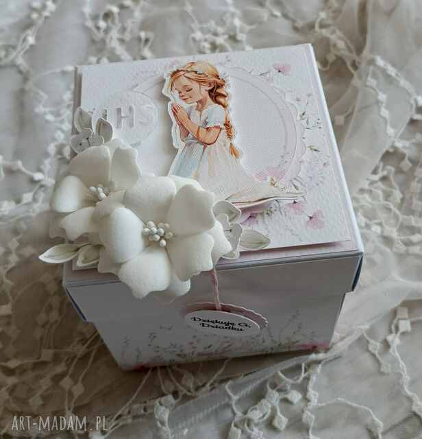 Exploding box - komunia św. Scrapbooking kartki handmade Pudełeczko "explodujące", a każda ścianka ma inne zdobienie, bezdrzewne85,00 zł