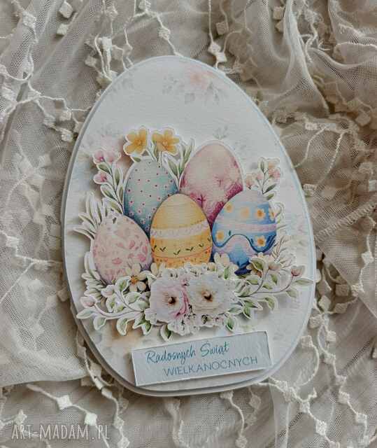 Kartka wielkanocna - niebieska pisanka. Delikatna, pastelowymi kwiatami, Wyjątkowa pamiątka i piękny sposób, Czas oczekiwania30,00 zł